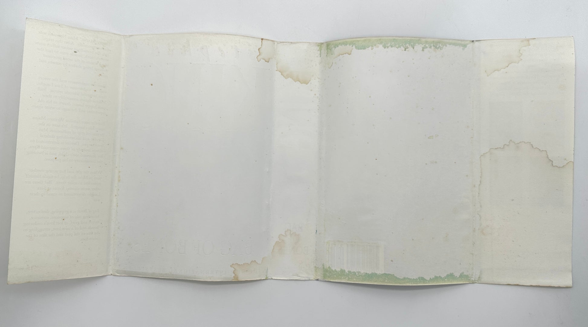 Some tide marks to the head and tail of the lower board, jacket verso and front panel recto, mild rippling to the final 15 leaves, light shelfwear, minor chips to the foot of the spine. A touch of foxing to the prelims and edges. Binding tight and square. Overall handsome and desirable despite some minor faults.