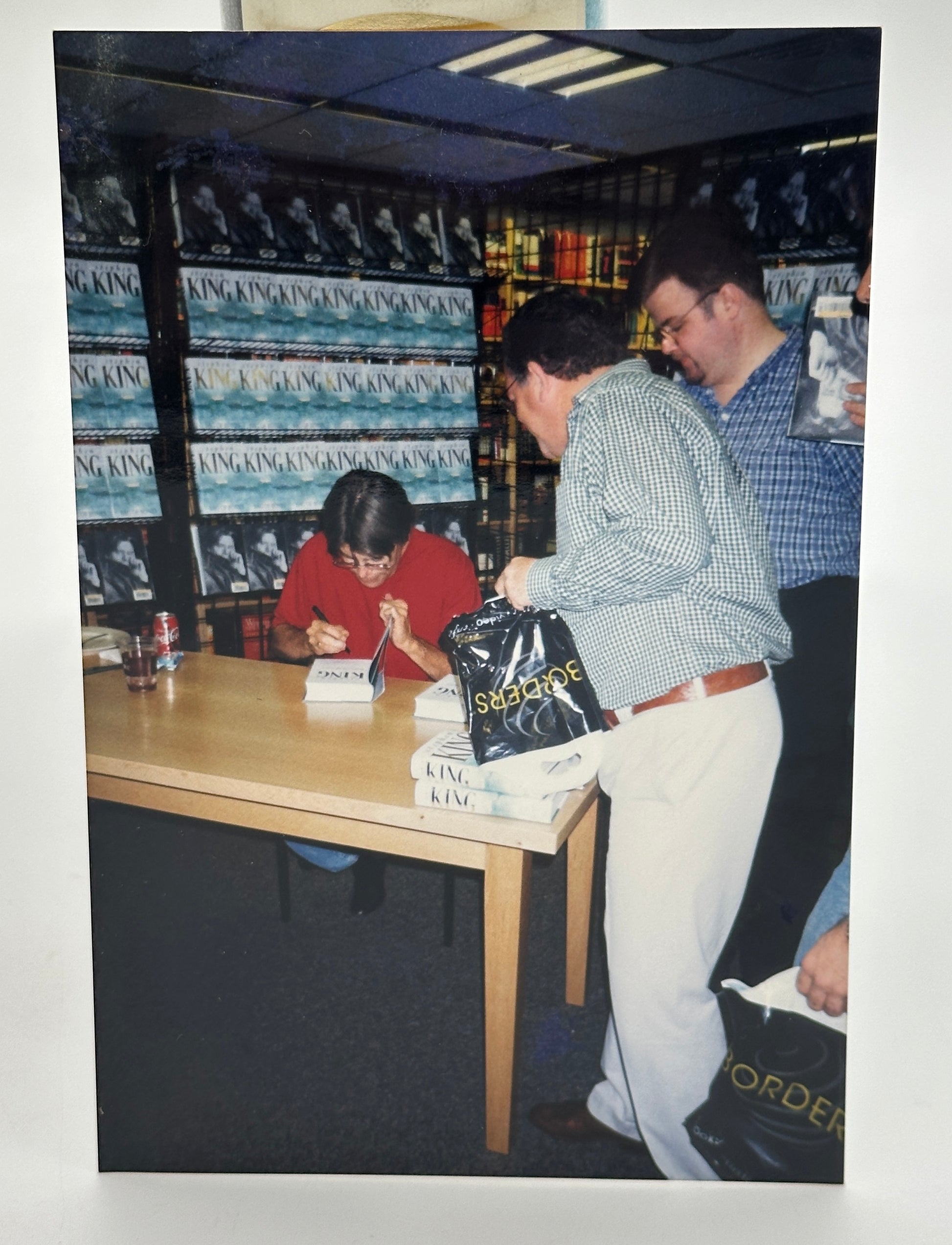 Flat signed by the author to the title page. Accompanied by a photograph of King at a book signing event, at Borders Books and Music, Oxford Street, London on 22 August 1998 - attendees can be seen carrying Borders bookshop bags with copies of the book displayed behind the author and on the signing table. King can be seen signing the current copy. Borders price sticker to the back panel of the dust jacket further confirms this provenance. Due to his immense popularity, the increasing value of signed items and King’s refusal to sign books mailed in to him, his signature is often forged - the current copy, then, is particularly desirable with unusually good provenance confirming the authenticity of the signature.