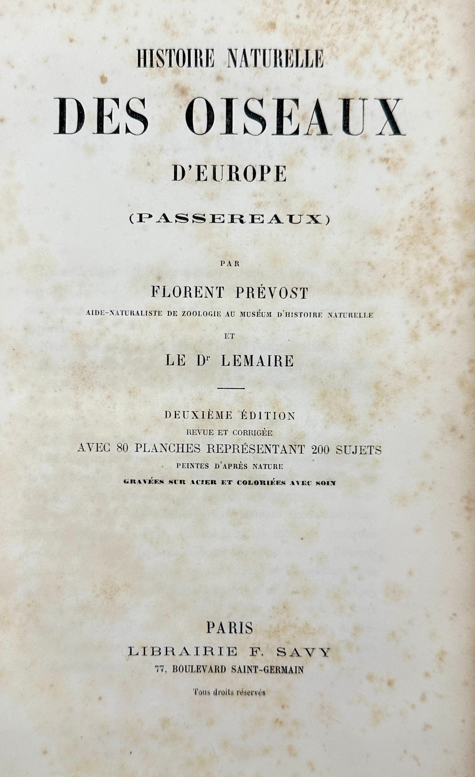 Histoire Naturelle Des Oiseaux D’Europe by Florent Prevost & Dr Lemaire